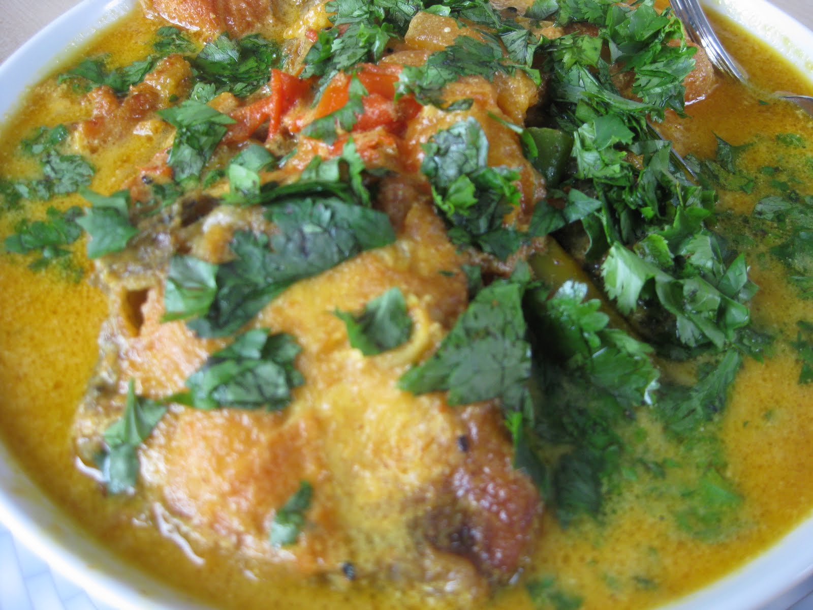 Below are photos of two things we made...the one on the right is shorshe roi (rohu fish in mustard curry, a traditional Bengali recipie) and the one is the left is chicken with peppers/capsicum made the Chinese way.